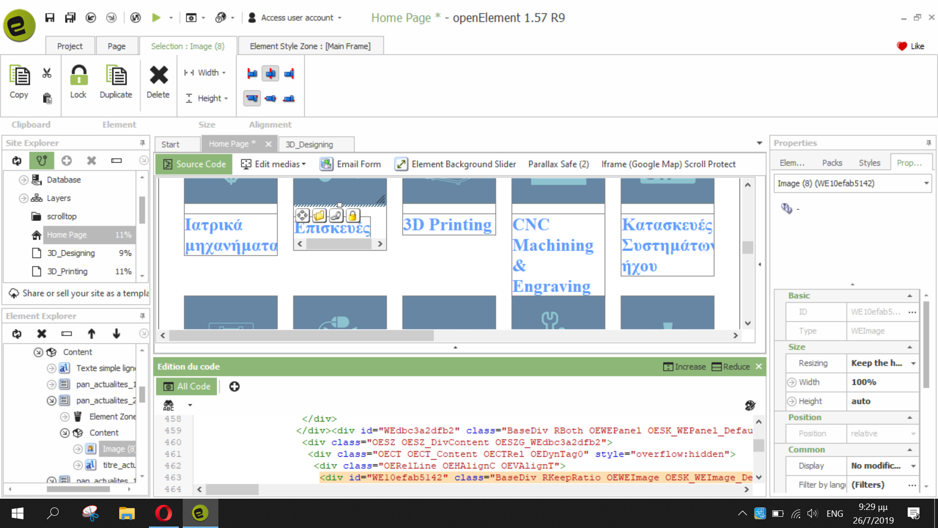 Την ιστοσελίδα αυτή, την σχεδίασα με το Open Element, όπως φαίνεται και στη διπλανή φωτογραφία.